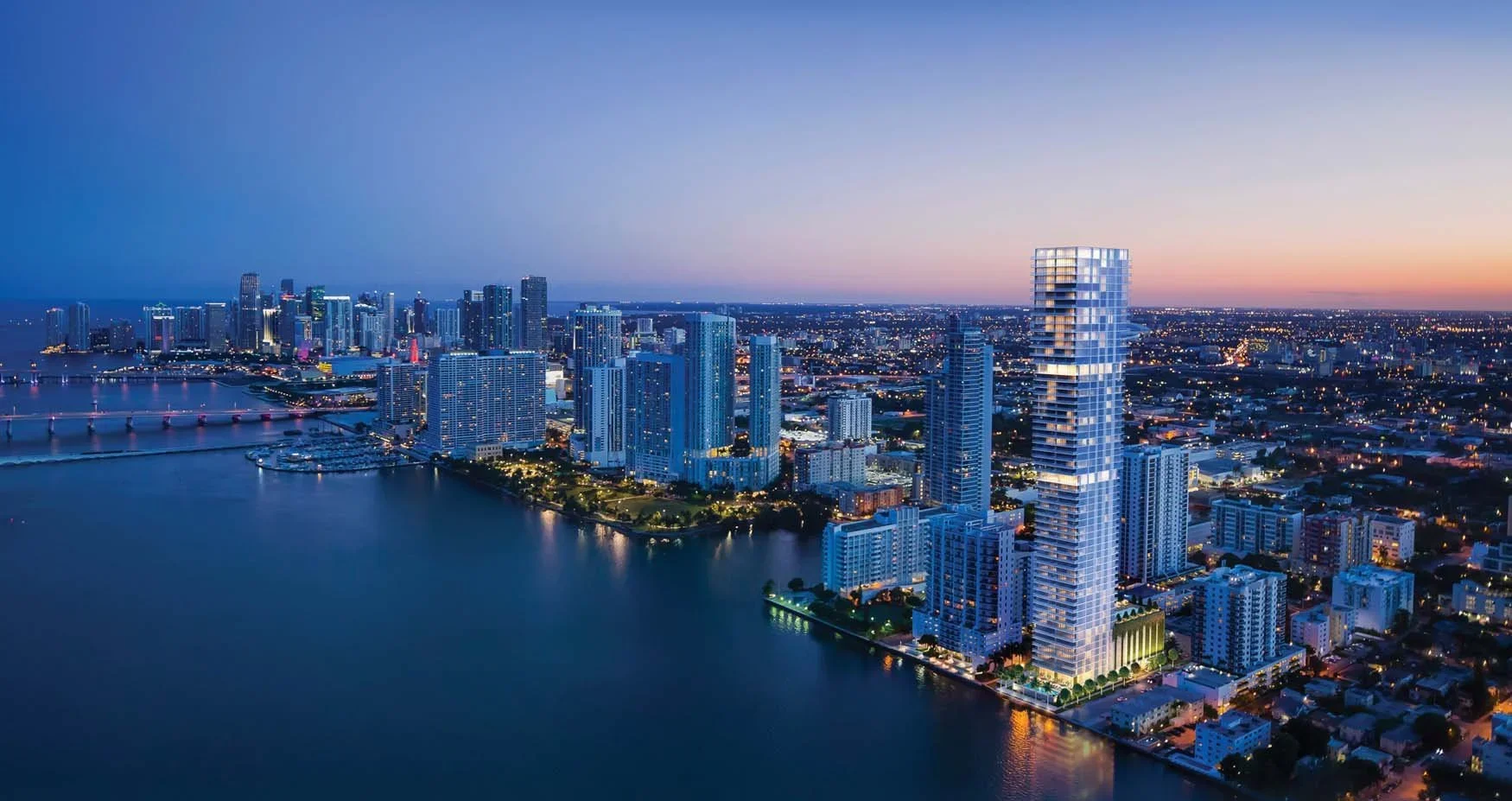 The picturesque bayfront neighborhood of Edgewater, nestled between Downtown Miami and the Design District, has undergone a remarkable metamorphosis. Once known for its charming early 20th-century homes and modest high-rises, Edgewater has blossomed over the past few decades into a vibrant, sophisticated neighborhood that seamlessly blends urban energy with waterfront tranquility. Now a hub for cutting-edge interior design and architecture, present-day Edgewater has emerged as a premier destination for those seeking upscale and ultra-luxury condo tower residences with breathtaking views of Biscayne Bay.