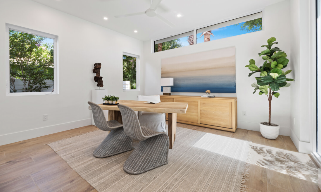 Coastal interior designs bring in the light using large windows, skylights, and glass doors. The style also uses mirrors and reflective surfaces for optimal diffusion of light in the home.